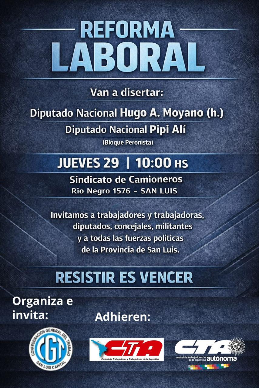 Contará con la participación de los diputados nacionales Ernesto Nader “Pipi” Alí y Hugo Antonio Moyano quienes disertarán en la jornada organizada por la CGT Regional San Luis y ATE San Luis.